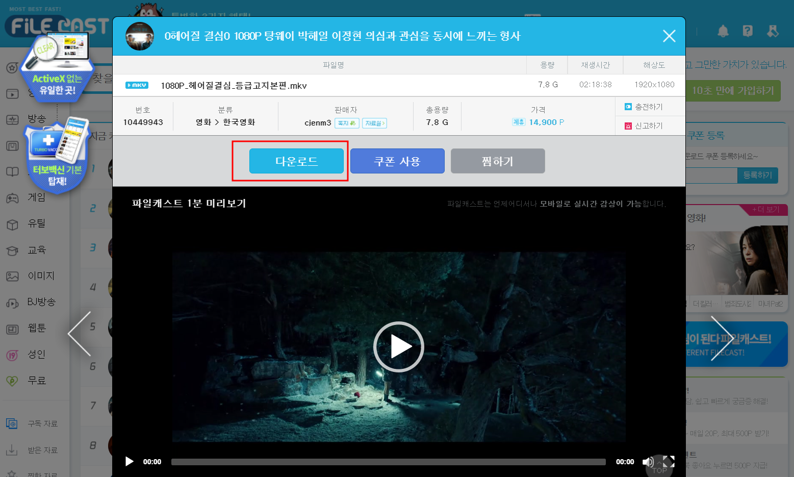 파일캐스트는 영화,드라마 같은 동영상 다운로드 사이트입니다