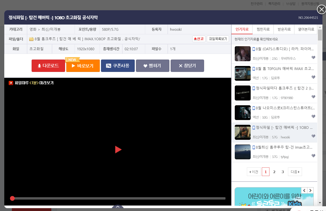 영화,드라마와같은 동영상 뿐 아니라 유틸,자료등 다양하게 다운받을 수 있습니다