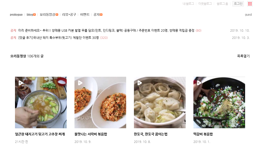 다른 블로그와 다른 점은 음식 만드는 방법을 텍스트와 이미지로만 하지 않고 동영상으로 제작했다는 것입니다.